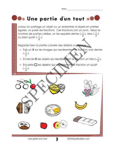 L'élève doit identifier correctement les images représentant les fractions de base : ½, ⅓ et ¼.