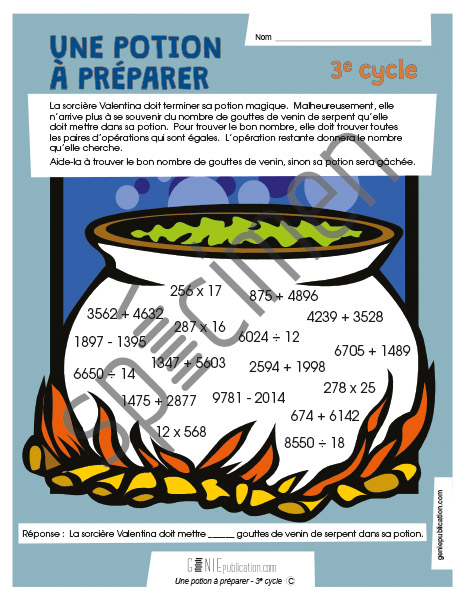 Une potion à préparer – 3e cycle