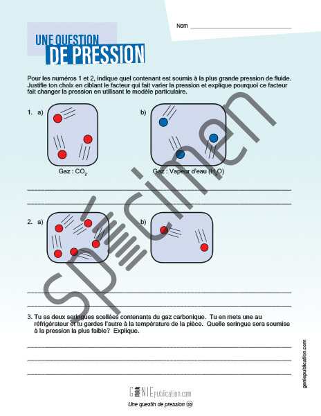 L'élève doit répondre à quelques questions portant sur la pression exercée par un gaz et les facteurs influant la pression.