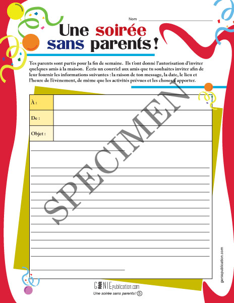L'élève doit rédiger un courriel fictif dans le but d’inviter quelques amis à venir passer une soirée à la maison.