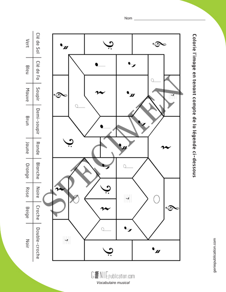 L'enfant doit colorier les différents symboles musicaux en respectant une légende.