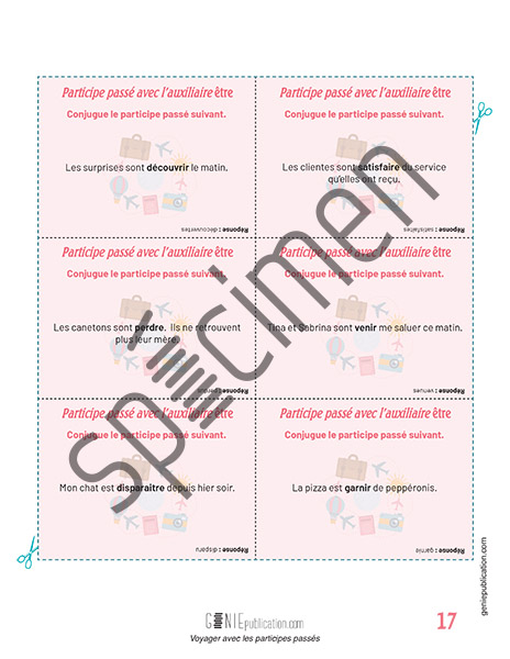 - 108 cartes de questions sur les participes passés.