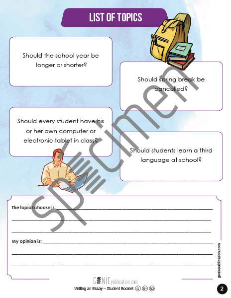 Guide de l'élève comprenant le matériel nécessaire pour écrire un essai argumentatif :